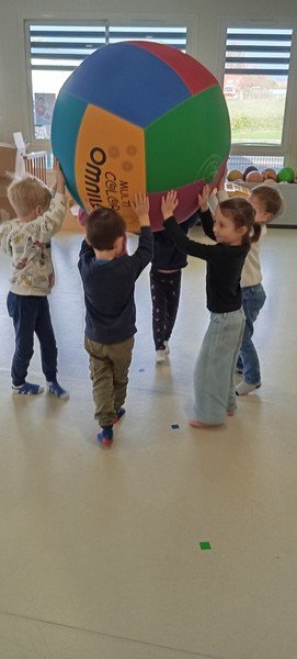 Le Kinball est une très grande baudruche gonflée dans un tissu. Nous l’avons utilisé pour développer la coordination et la coopération.