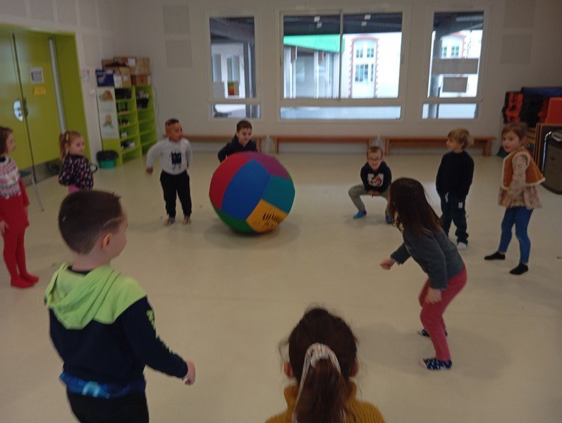 Le Kinball est une très grande baudruche gonflée dans un tissu. Nous l’avons utilisé pour développer la coordination et la coopération.