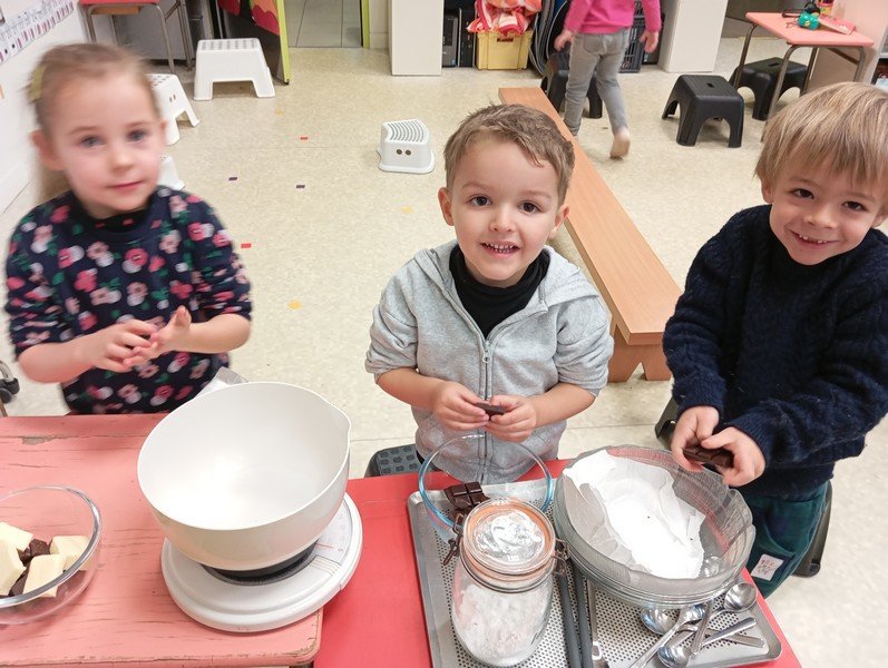 Les anniversaires de novembre et décembrePar Stéphanie Verdon / 19 décembre 2024 Pour fêter les anniversaires des mois de novembre et décembre, Romane, Alessio et Oscar ont préparé des “chococrocs”. 1734516286998 Image 6 parmi 7 Nous les avons partagé en classe. C’était délicieux !!!
