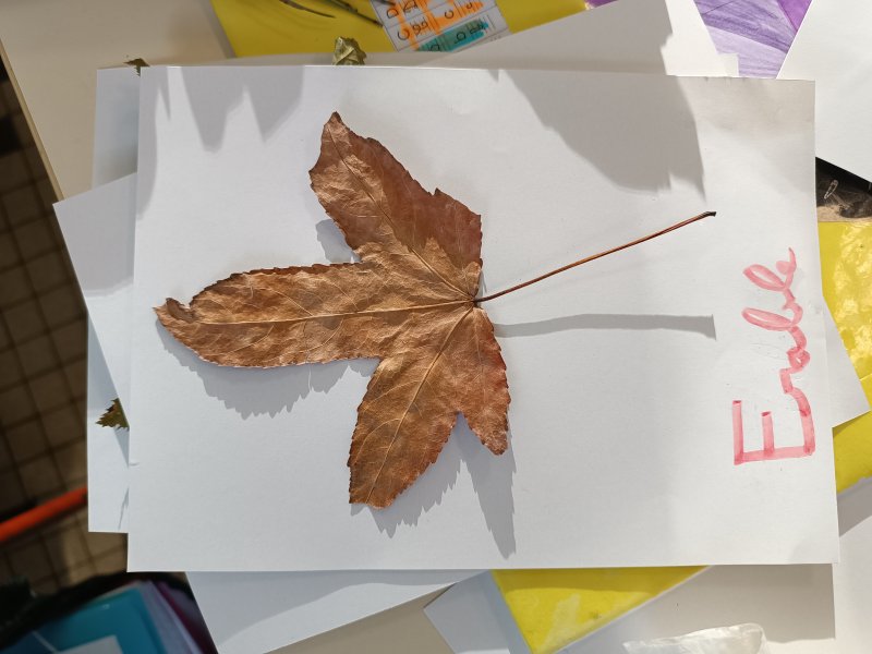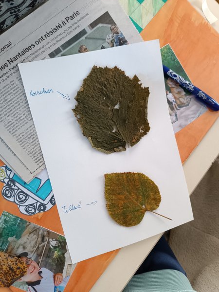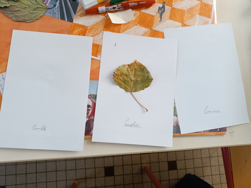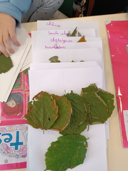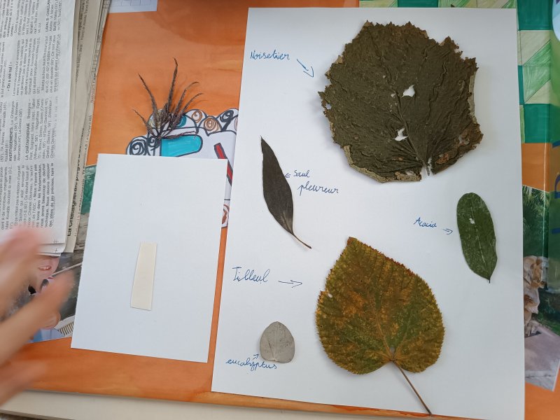 A la suite de la lecture de la nouvelle “Voyage au pays des arbres” de JMG Le Clézio, les élèves de CM1-CM2 A ont cherché et rapporté des feuilles d’arbres.