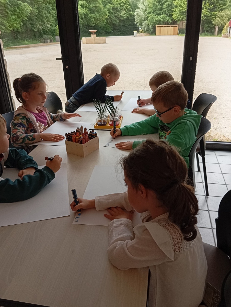 Le matin, nous avons fait des activités autour de quelques oiseaux de notre environnement : la mésange, le pigeon, la tourterelle, l’hirondelle, le merle, le pic-vert et la pie.