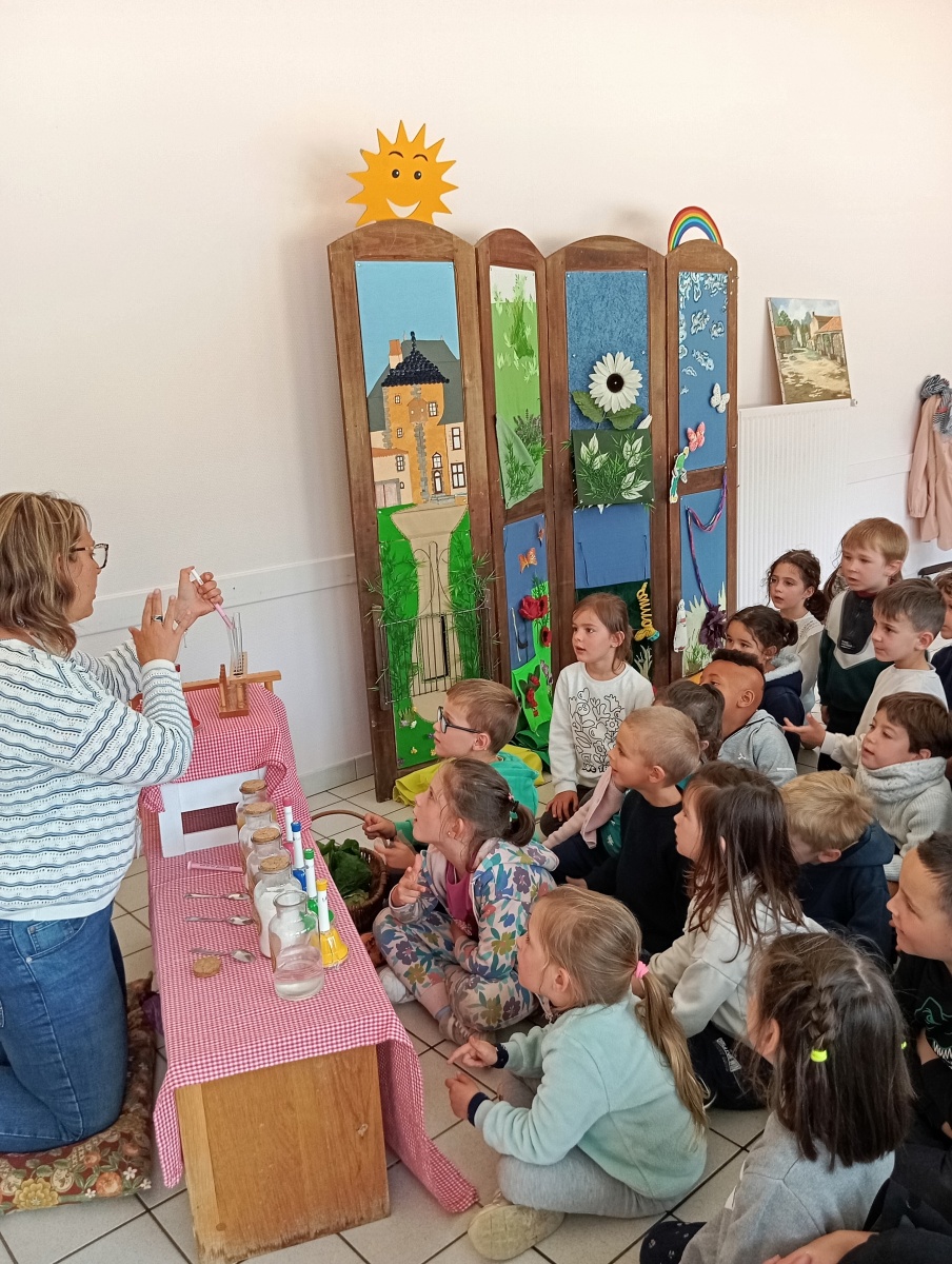 Samuel nous a aussi expliqué qu’avec le chou rouge du potager et une formule magique on pouvait fabriquer les couleurs de l’arc en ciel.