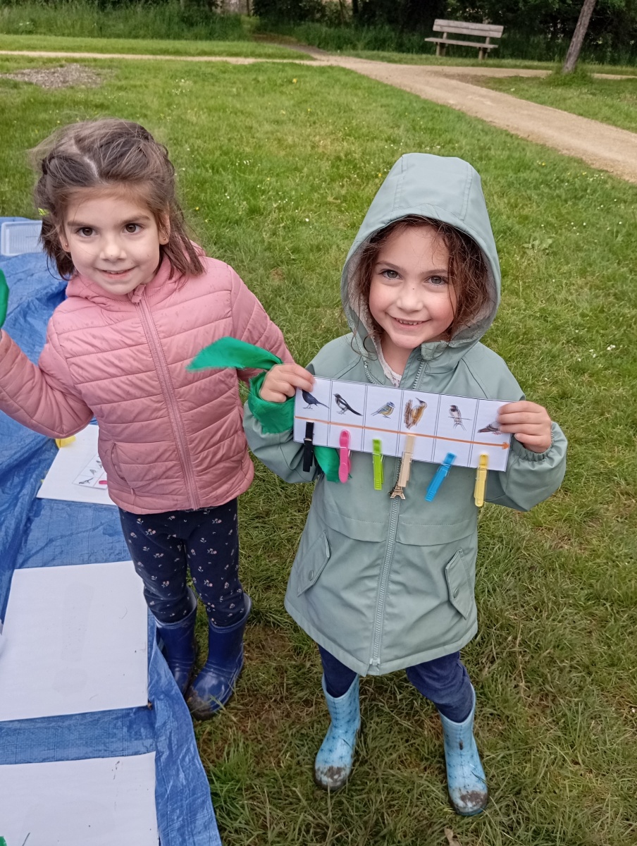 Activités : Ecoute des chants, jeu coopératif pour refaire les puzzles des oiseaux, memory et course d’orientation dans le labyrinthe.