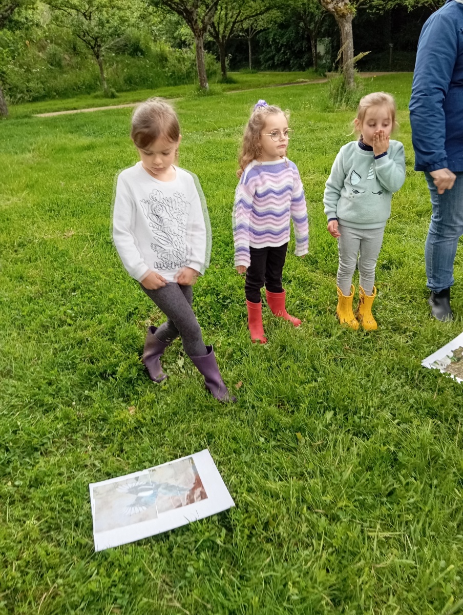 Activités : Ecoute des chants, jeu coopératif pour refaire les puzzles des oiseaux, memory et course d’orientation dans le labyrinthe.