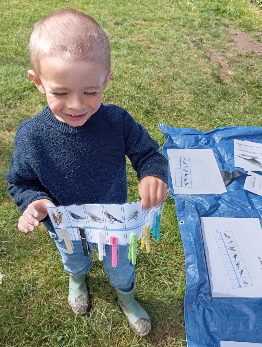 Activités : Ecoute des chants, jeu coopératif pour refaire les puzzles des oiseaux, memory et course d’orientation dans le labyrinthe.