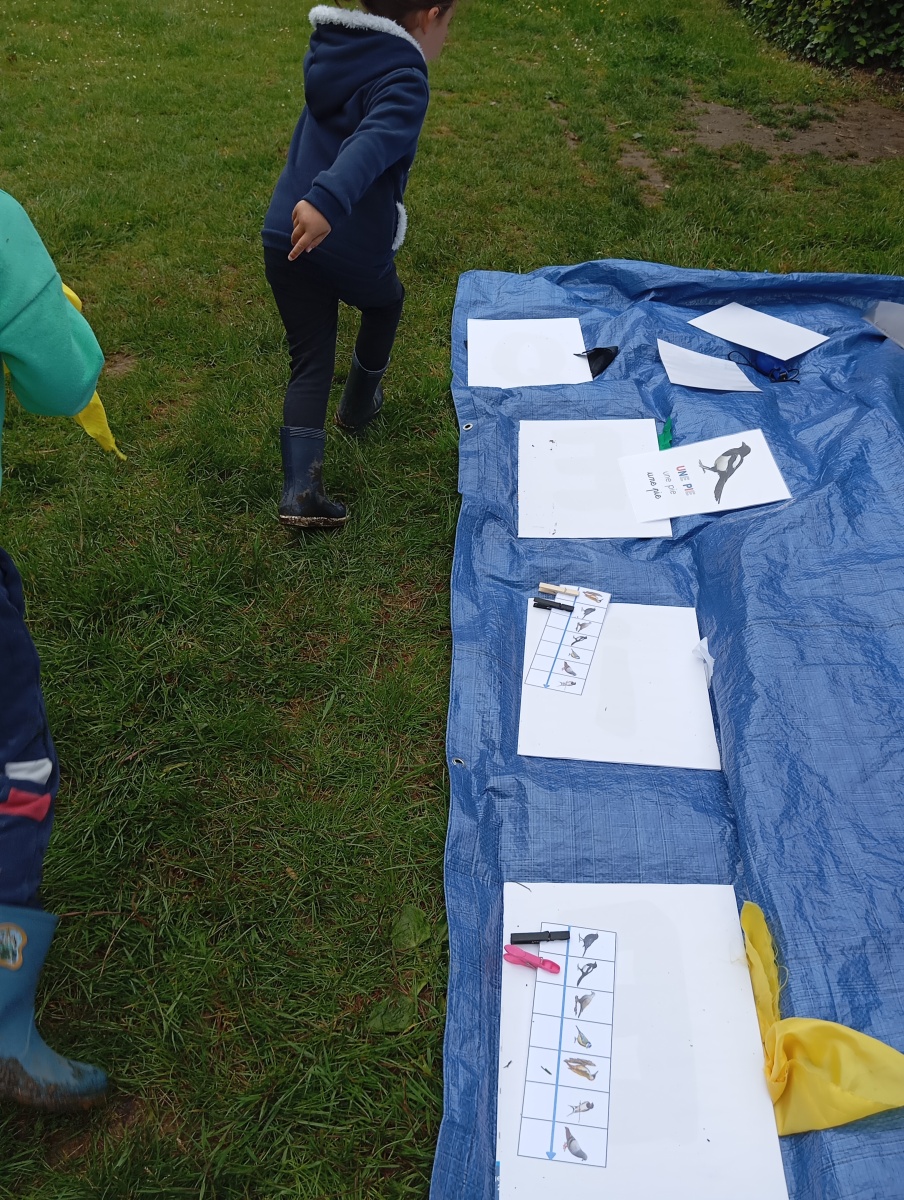Le matin, nous avons fait des activités autour de quelques oiseaux de notre environnement : la mésange, le pigeon, la tourterelle, l’hirondelle, le merle, le pic-vert et la pie.