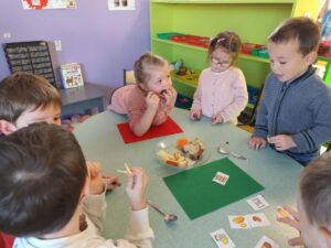 En cette semaine du goût, les élèves ont pu déguster divers aliments afin de les trier. D’un côté les aliments sucrés, de l’autre les aliments salés.
