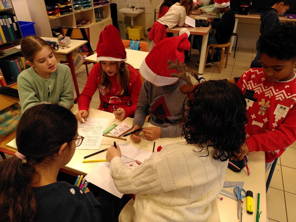 A la veille des vacances de Noël, les CM A ont vécu un rallye maths où, par groupe, ils devaient résoudre quatre exercices mathématiques.