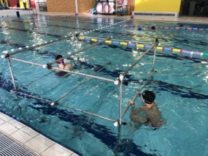 Chaque jeudi matin, les CP et les CE2 suivaient des séances de natation, répartis en 4 groupes : ÉTOILE DE MER, TORTUE, POISSON et DAUPHIN.