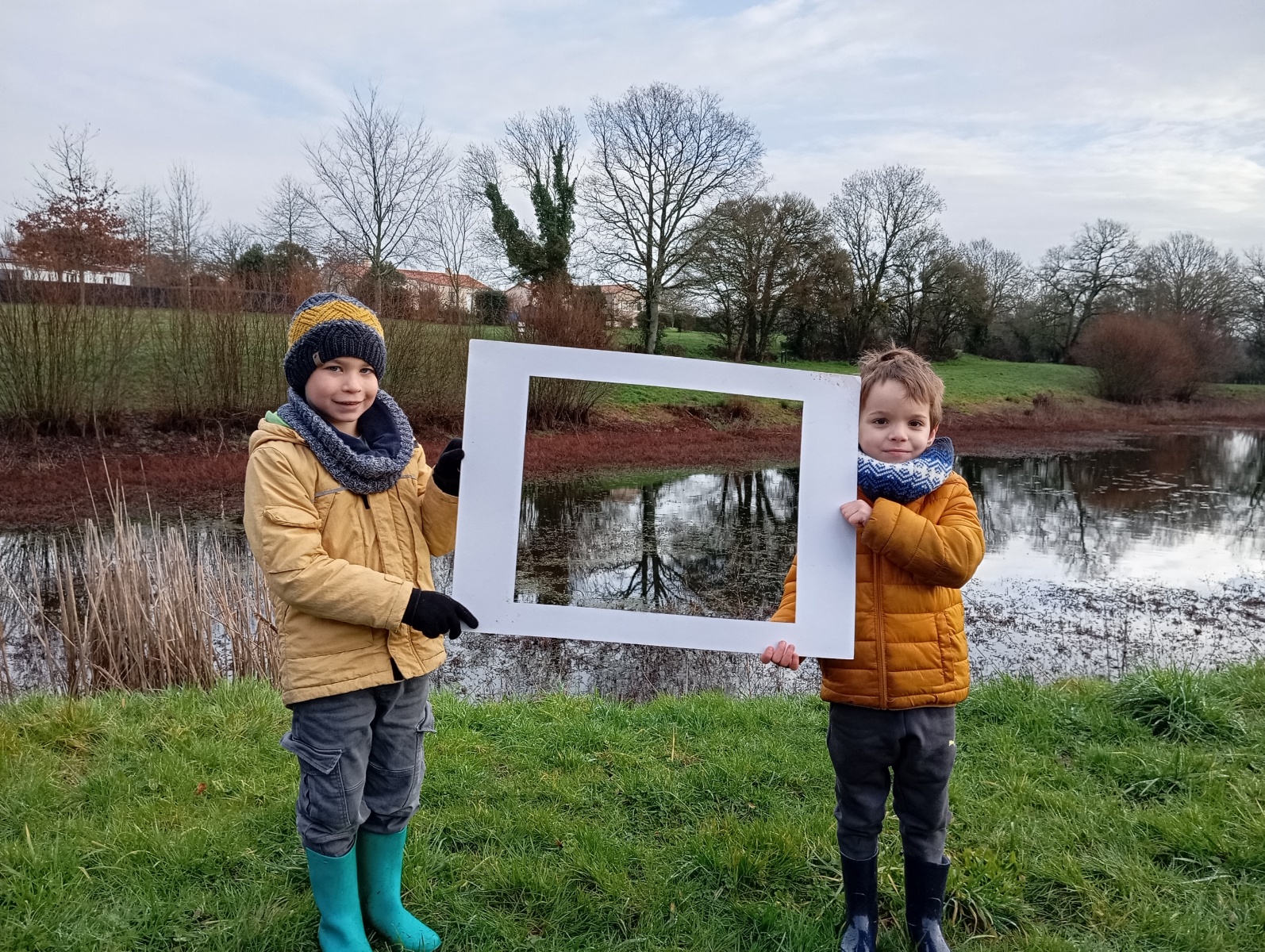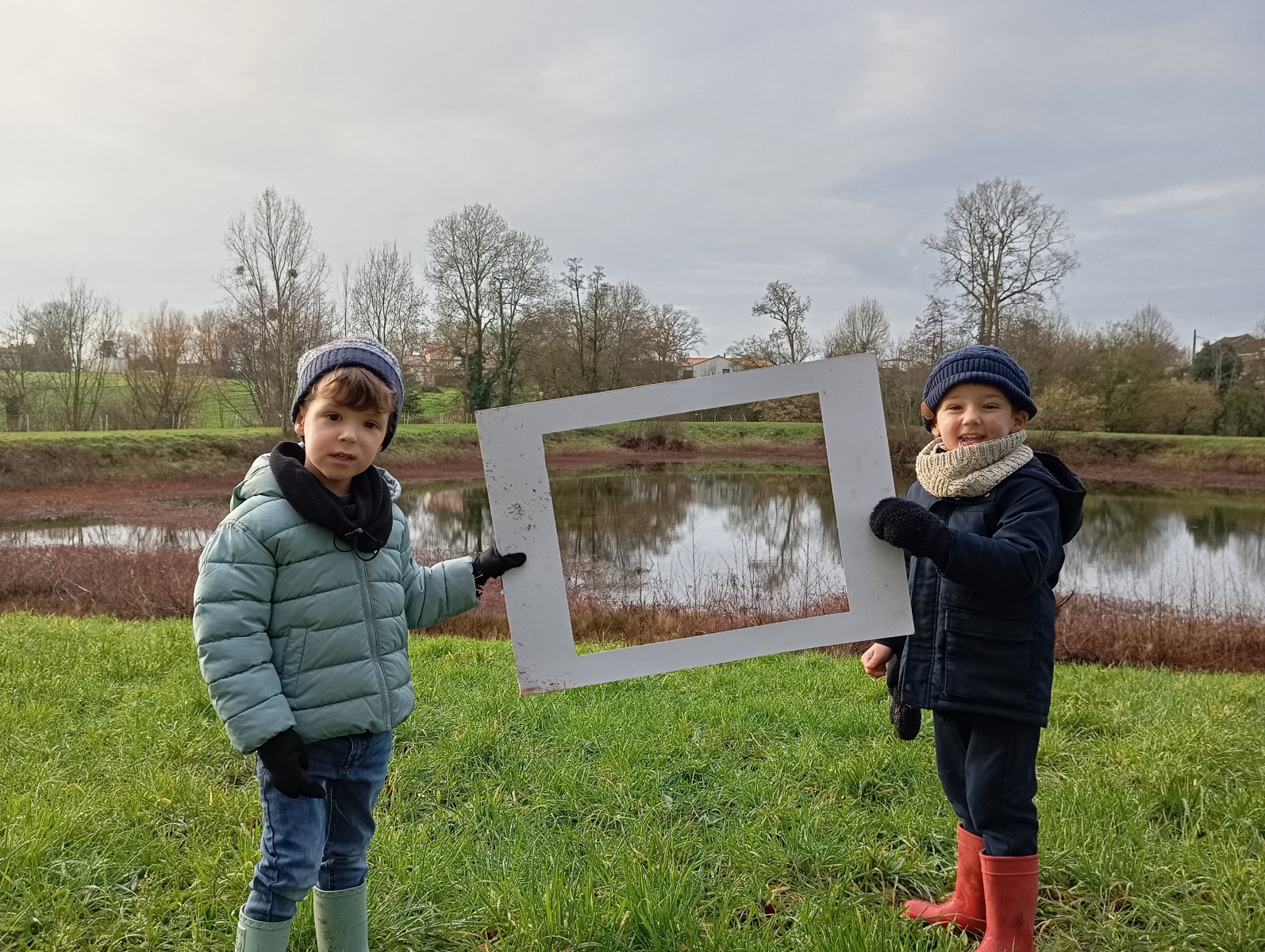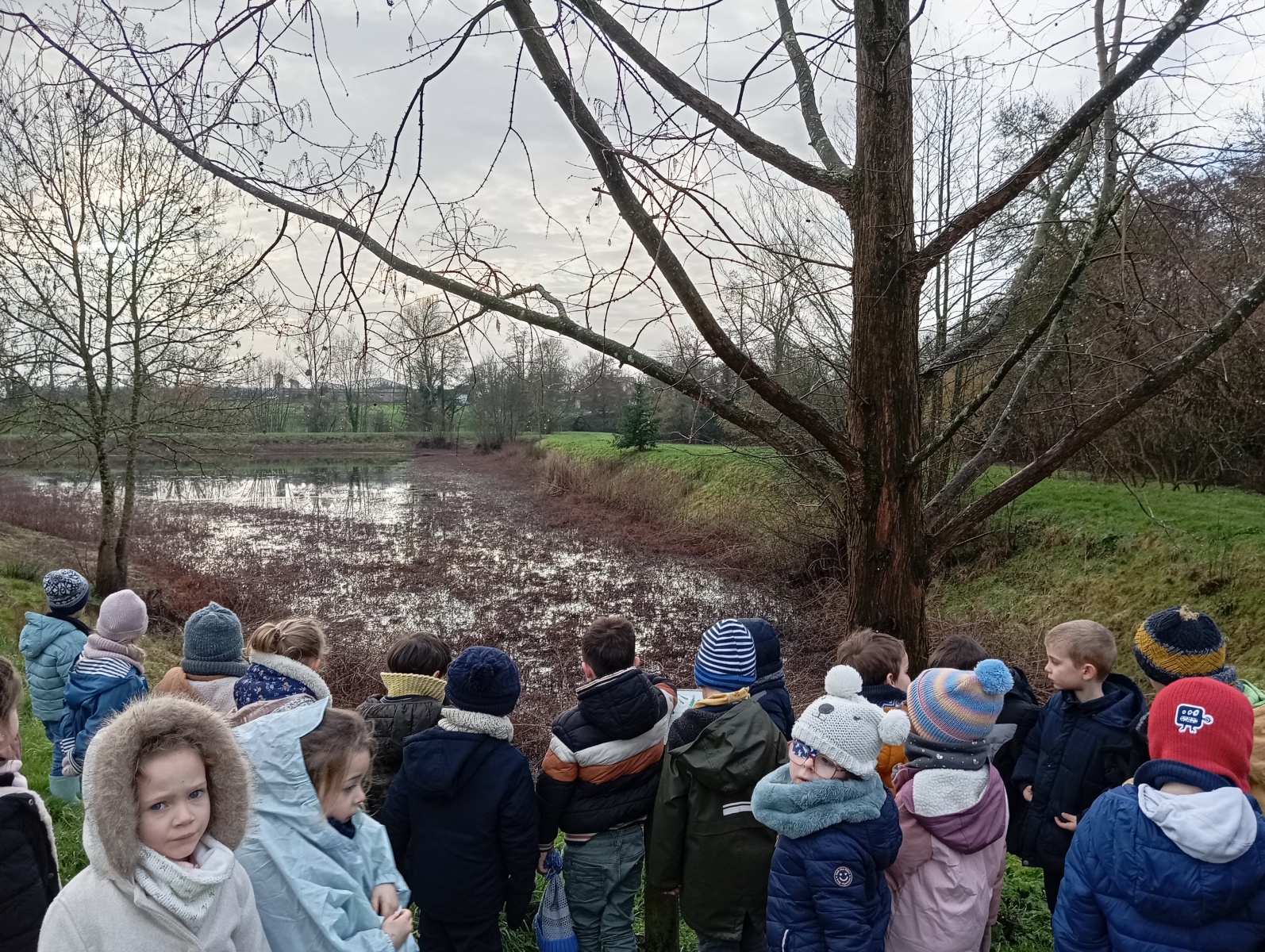 Nous sommes allés à la bibliothèque et à l’étang où nous avons observé le paysage d’hiver.