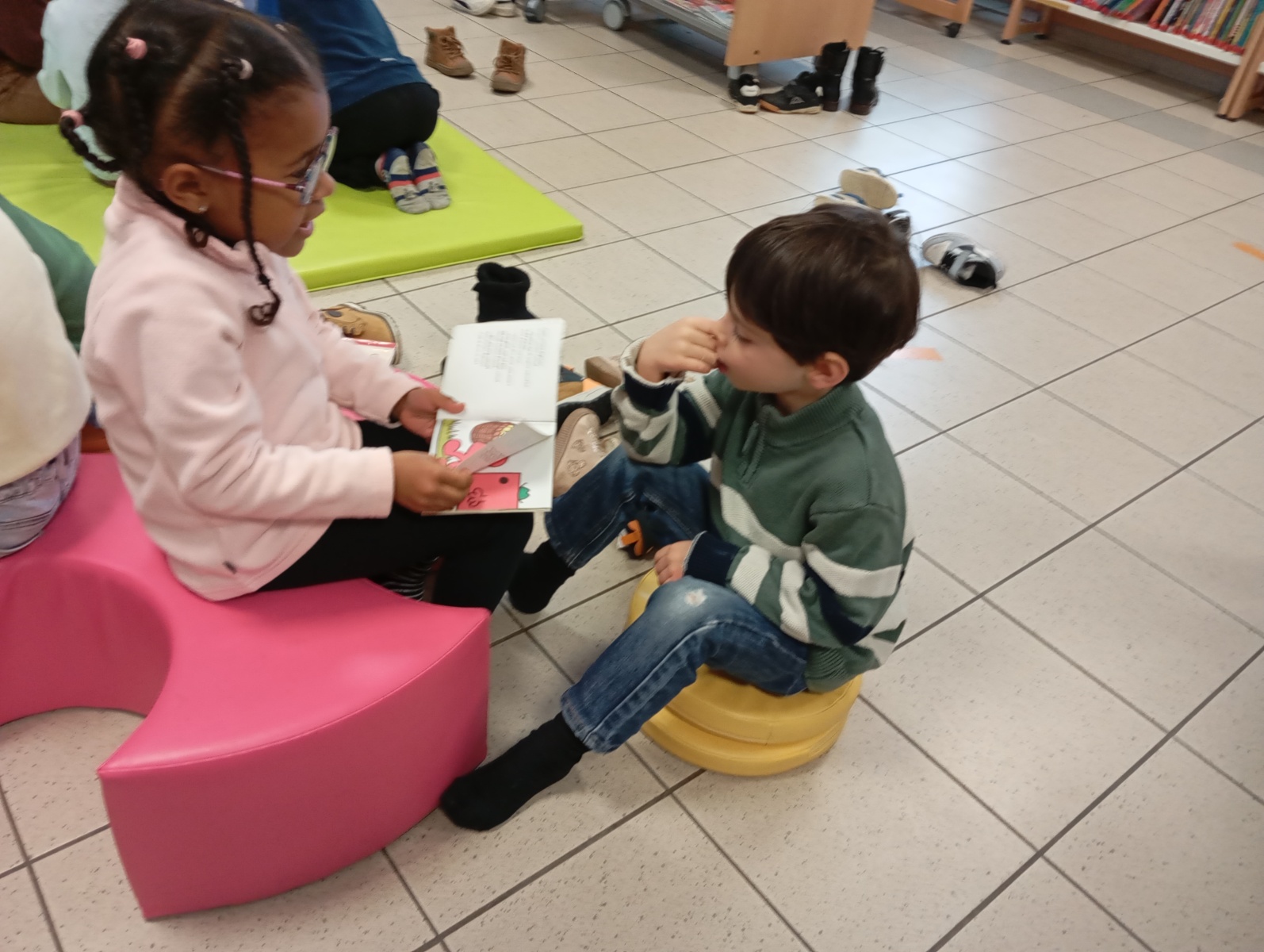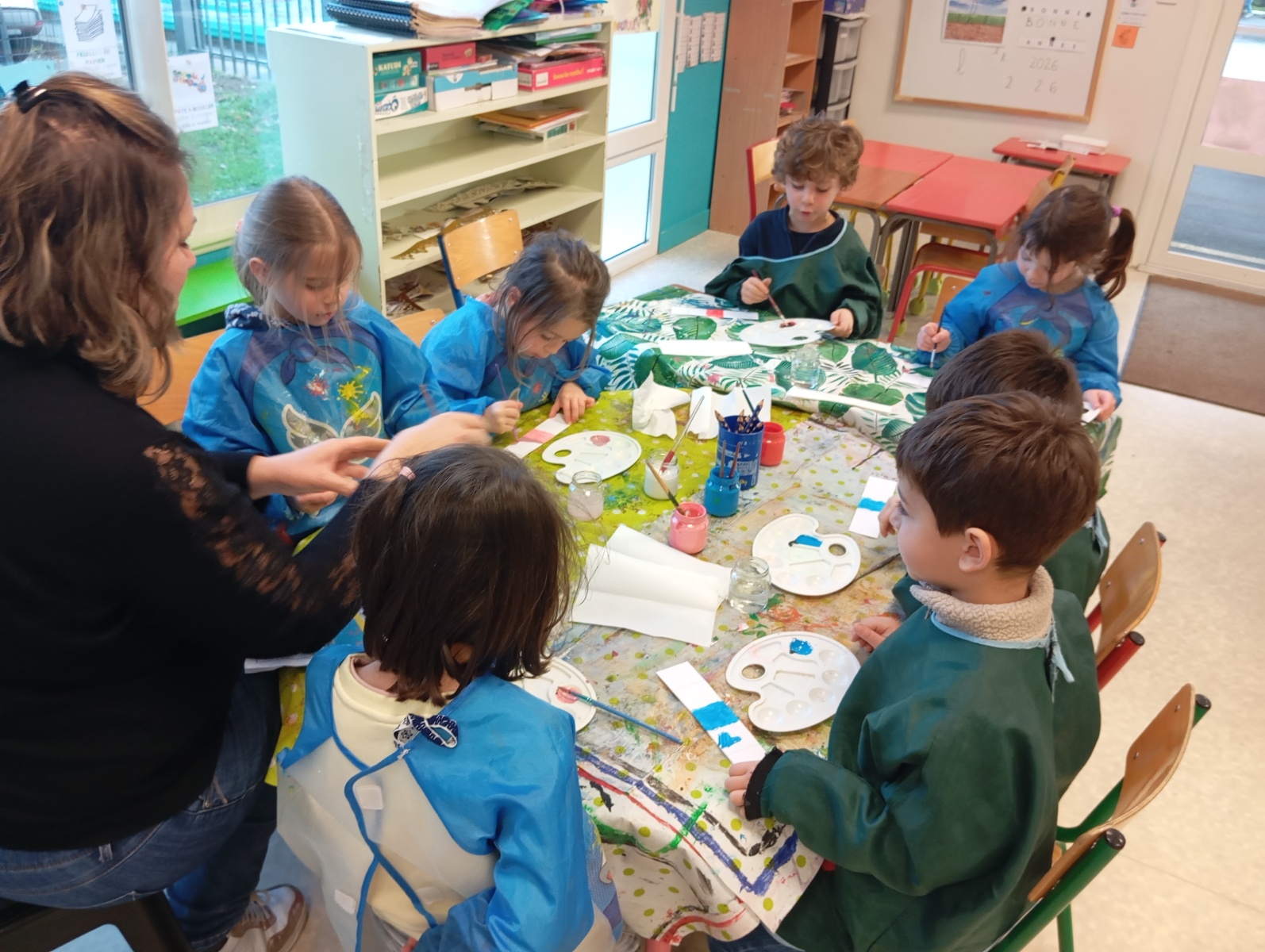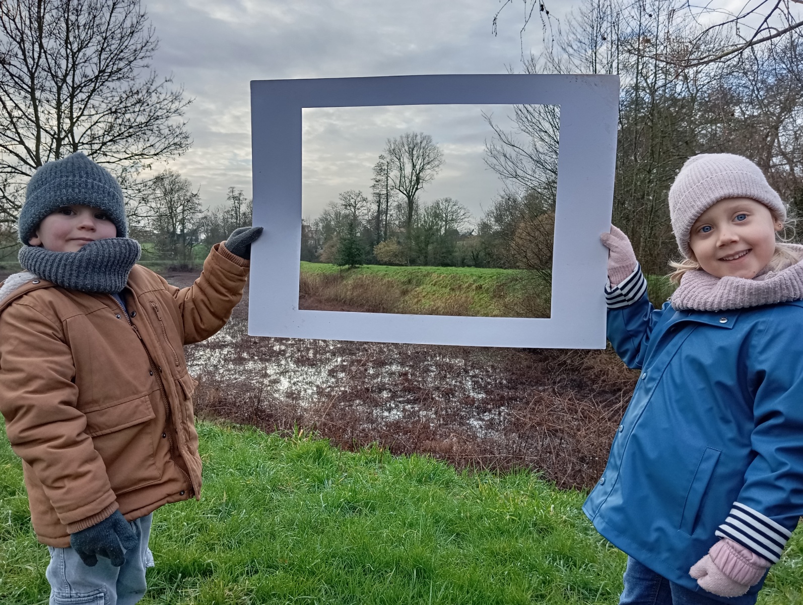 Nous sommes allés à la bibliothèque et à l’étang où nous avons observé le paysage d’hiver.